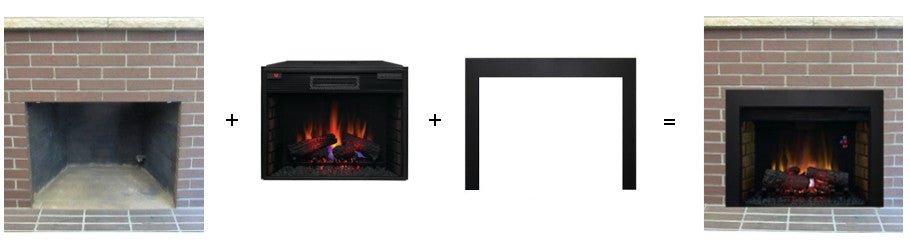 Pre-made and custom trims available in a variety of sizes. The trim is attached with magnets and overlaps the facade to cover the void between the insert and the opening, resulting in a finished look. Magnetically-attached trims are easily removed for regular cleaning and maintenance of your electric fireplace insert. All trims are in a matte-black finish and made in the USA.